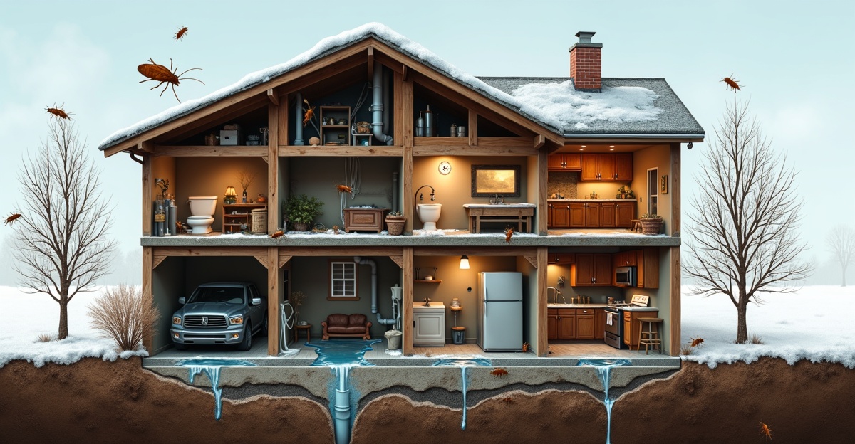• Extra moisture from leaky pipes, melting snow, or poor drainage creates the perfect setting for cockroach activity.